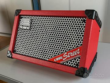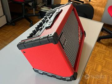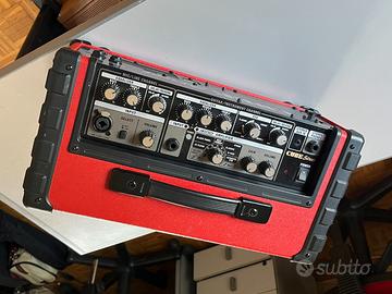 Marca: Roland (no Boss) Modello: CUBE Street Amplificatore stereo compatto e leggero con lo stesso design di uno stage floor monitor. 2 Speakers da 6.5" al neodymium dalle grandi prestazioni Possibilità di utilizzo a batterie (6 x AA, Max 15h di autonomia) Struttura a due canali separati Guitar/Inst e Mic/Line input 8 COSM AMPs, 6 effetti digitali, e un accordatore cromatico interno. 2-band EQ, Delay/Reverb per il canale Mic/Line Adattatore AC incluso 8 amplificatori a bordo Nascosti al suo interno, il CUBE Street offre ben otto amplificatori differenti grazie ai suoi COSM amp model. Dai classici valvolari per il blues ai moderni stack per il metal, la tecnologia COSM di Roland è famosa nel mondo per riuscire a catturare ogni sfumatura degli amplificatori originali, dal preamplificatore, alla circuitazione sino all'altoparlante. Uno strumento completo Il CUBE Street è pieno di caratteristiche extra, che rendono più semplice ogni vostra esibizione, incluso un accordatore cromatico interno e due possessori gli effetti digitali. In aggiunta COSM amp model già citati, potete scegliere tra sei famosi effetti Roland per arricchire il vostro sound. PA portatile È un amplificatore per chitarra ed un mini-sistema PA in uno! Colore: fire-engine red SPEAKERS: 16 cm (6.5 inches) x 2 POTENZA: 2.5 W + 2.5 Watt CONTROLLI: (MIC/LINE Channel) - SELECT Switch (MIC/LINE), - VOLUME, - EQUALIZER (BASS, TREBLE), - DELAY/REVERB (GUITAR/INSTRUMENT Channel) - TUNER Switch - TYPE Switch - GAIN - VOLUME - EQUALIZER (BASS, MIDDLE, TREBLE) - EFX - DELAY/REVERB CONNESSIONI: (MIC/LINE Channel) - Input - Foot Switch (GUITAR/INSTRUMENT Channel) - Input - Foot Switch - STEREO AUX IN Jack - PHONES ALIMENTAZIONE: - Adattatore rete (compreso) - 6 pile AA (non comprese) DIMENSIONI: cm. 41,5 x 29,5 x 25 PESO: kg. 5.9 In dotazione: Adattatore AC originale Manuale in italiano stampato Su richiesta, invio manuale formato PDF. Usato ma in ottimo stato.