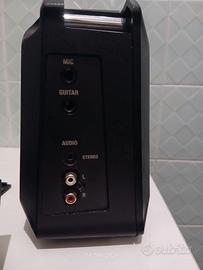 Vendo per inutilizzo, usato pochissimo. Funziona con 6 stilo e dura ore (poi basta sostituirle). Ottimo per piccoli spazi o all'aperto per non farsi notare troppo. Entrata chitarra, voce, aux per base, con effetti. In aereo sta nel bagaglio a mano date le dimensioni: 28 x 11 x 17,7 mm; Peso :2.5 kg. Suono limpido e pulito, non sembra proprio un 5watt. Regalo alimentatore da muro, batterie ricaricabili con caricatore, cinghia per trasporto. Non tratto, quindi non rispondo neanche a chi fa offerte di un euro di meno, costa nuovo 198€, vendo a 100, grazie