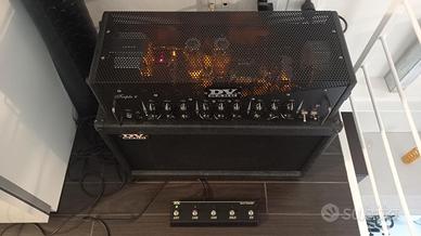 Svendo (a meno di un terzo del valore) Testata valvolare per chitarra Dv mark triple 6 abbinata a cassa Dvmark c112 standard. La Testata ha tre canali indipendenti e 120w di potenza. Negli anni ha fatto solo due concerti in piccoli locali e uso casalingo per quanto possibile. La testata, pur essendo assolutamente solida e ben rifinita, è caratterizzata da un peso dell'ordine dei 10 kg, quindi facilmente trasportabile, è infatti dotata di custodia originale. Da pochi mesi è stato fatto un service direttamente da Dvmark con cambio valvole finali e aggiornamenti vari. Oltre a essere spettacolare, è' veramente pari al nuovo. Vendo per inutilizzo. Visibile a Milano, non spedisco.