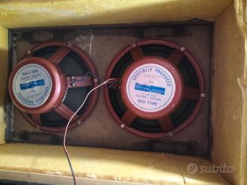 Monta due Speaker IREL da 12 pollici viola, gli stessi usati nei primi Montarbo, da 4 Ohm in parallelo per una impedenza finale da 2 Ohm. Recentemente ho fatto riavvolgere il trasformatore di uscita (che aveva alcune spire in corto) mantenendo questa configurazione originale. Il tecnico ha anche provveduto alla pulizia (anche dei potenziometri) e alla sostituzione di componenti fuori tolleranza (compresi gli elettrolitici di filtro).