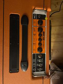 Amplificatore per chitarra stereo 30W valvolare Inclusi: supporto Boss e cover originale Orange come si vede in foto. Ampli usato poco e tenuto con molta cura. Tipologia: Amplificatore valvolare twin channel 2x10" stereo, loop effetti con buffer valvolare mono/stereo & modalità half-power Controlli canale clean: Volume Controlli canale lead: Gain, Bass, Middle, Treble, Volume, selettore canale, selettore Half/Stby/Full Power, interruttore di accensione Potenza di uscita: 30W / 15W (15W o 7,5W per lato, selezionabile) Valvole preamplificatrici: 4x ECC83 / 12AX7, 2x ECC81 / 12AT7 Valvole amplificatrici: 4x EL84 Altoparlanti: 2x Orange Voice Of The World Gold Label 10" Effetti Loop: Sì, con buffere valvolare, return mono o stereo Finitura: Vinile Arancione Basketweave Dimensioni: 580 x 460 x 290mm Peso: 23,3kgl