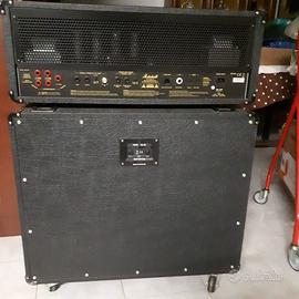 Amplificatore professionale valvolare x chitarra Marshall, mod jvm 410 H 100w, + cabinet 1936 vintage con ruote ( 2 diffusori celestion 12" G12T75 70+70w in stereo, 140w in mono.+ Pedl 91016 foot switch 6 pulsanti e cavi di collegamento. Utilizzato pochissimo, in ottimo stato. Prezzo leggermente trattabile.