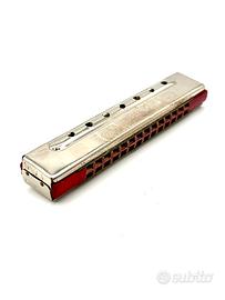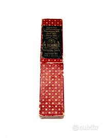 Armonica Bravi Alpini! M. Hohner in metallo cromato e legno. Con confezione originale, prima metà del XX secolo.