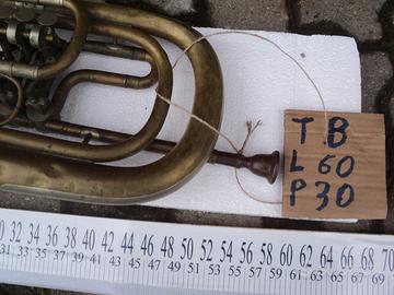 antica tronba in ottone con 3 bottoni da restaurare di lun 60 cn e lar 30 con lettere di riferimento TB