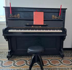 Pianoforte acustico verticale, antico ma ancora funzionante ed è già stato accordato più volte, manifattura tedesca dei primi del 900. Munito di chiave, doppio pedale funzionante, portacandele in bronzo originali in stile liberty. Ideale come primo pianoforte di studio. Se volete sentirlo suonare chidetemi in chat così vi mando il link a un video che ho caricato su tiktok.
