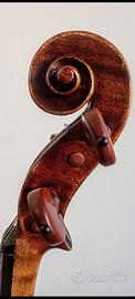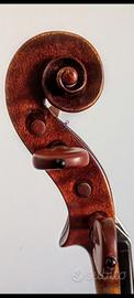 Vendo questo antico violino databile alla fine dell'800 di autore incerto ma di probabile produzione boema. All'interno vi è scritto un nome in bella e antica calligrafia a matita sul fondo: Forberger. Nome che non sono riuscito a ricondurre ad un autore specifico e che forse fa riferimento al liutaio Franciscus Forberger come autore di un restauro sullo strumento? Anche la tavola presenta alcune scritte a matita che sono visibili dal bottone, ma che non si riescono a leggere osservando da quella posizione. Ad ogni modo dovrebbe trattarsi di un violino costruito verso la fine del XIX o gli inizi del XX secolo di area tedesca o boema. Lo strumento è in perfette condizioni e pronto per essere suonato, è stata eseguita una nuova messa a punto con rifacimento del ponte e dell'anima presso liutaio. Ha un suono equilibrato, scuro e ricco di armonici, ma anche luminoso sulle corde alte. È possibile visionare e provare lo strumento previo appuntamento.