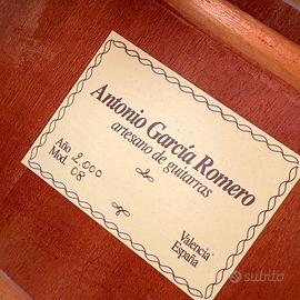 Vendo rara e preziosa chitarra classica Antonio Garcia Romero, artigianale, modello 08, realizzata a Valencia, Spagna, nel 2000.