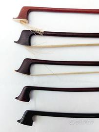 VENDESI 5 ANTICHI ARCHI PER VIOLINO IN BLOCCO (NON SEPARATAMENTE). UN ARCO HA IL BOTTONE DA RIPARARE. 1 HA UN TIMBRO SUL LEGNO