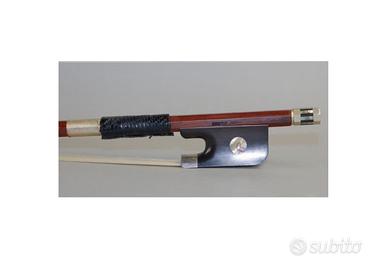 Arco per violoncello in argento con timbro John Horst - Bacchetta rotonda in pernambuco, montatura in ebano e argento. Peso: 79,5 grammi