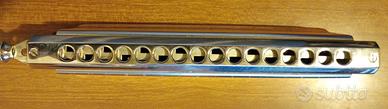 Vendo Hohner Chromonica 280-C (Made in Germany), armonica cromatica 16 fori / 64 note, produzione anni ’80/’90 con somiere in plastica. Strumento in buone condizioni generali, suona correttamente tutte le note, slide funzionante.