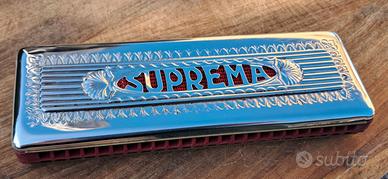 UTILIZZI:Ideale per:Collezionisti di strumenti musicali vintage e storiciMusicisti folk e tradizionali - perfetta per musica popolare italiana, canti di montagna, musica da balloAppassionati di storia della musica italiana del dopoguerraINFORMAZIONI STORICHE:La Suprema è un capolavoro della tradizione costruttiva italiana, prodotta durante l'epoca d'oro dell'industria italiana degli strumenti a fiato. L'armonica tremolo bitonale era lo strumento preferito dai musicisti popolari italiani per il suo suono ricco e avvolgente, generato dal sistema a doppia ancia.