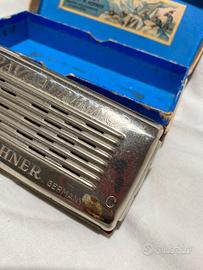 Armonica a bocca M. Hohner Bravi Alpini, Germany, in tonalità DO/SOL 2x16x2, con scatola originale, risalente agli anni ‘70.