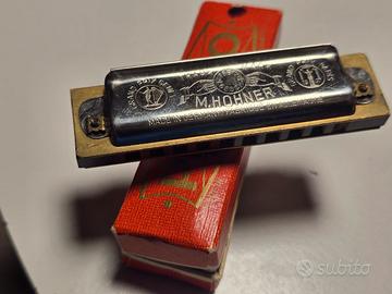 Armonica a bocca originale M. Hohner, prodotta in Germania, con incisioni celebrative dei premi Grand Prix Ginevra e Parigi. Modello storico, ideale per collezionisti e appassionati di strumenti musicali vintage. In ottime condizioni estetiche, completa della sua elegante confezione rossa con decorazioni dorate.