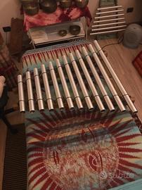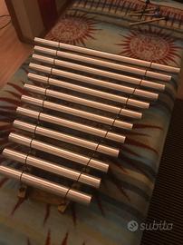 Arpa Angelica armonica con campane tubolari. L'arpa è accordata a 432 Hz, in scala penta tonica di SÌ. Dai suoni cristallini e persistenti, con vibrazioni che penetrano nel profondo. Strumento adatto sia per fare musica che per suono terapia. Su richiesta invio video di come suona.