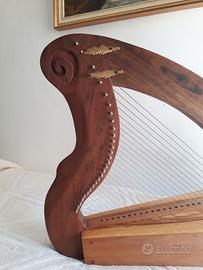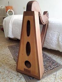 Non è uno strumento costruito da kit , né orientale, né realizzato con materiali scadenti. E' totalmente artigianale, realizzata con metodiche in parte antiche e con essenze totalmente massicce. Uno strumento vero, molto robusto e abbastanza pesante, per così dire. Le foto non rendono molto. E' stata costruita da me in persona, quest'arpa, dato che mi occupo di Liuteria.