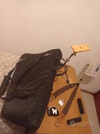 Vendo per inutilizzo arpa elettroacustica "Luna" costruita dal liutaio tedesco "Tremer Harfen", leggerissima circa 4 kg, 34 corde con levette professionali Camac, uscita jack per eventuale amplificazione, con i seguenti accessori: