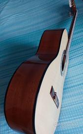 Come da titolo vendo questa bellissima chitarra Artesano Estudiante XA - Chitarra da concerto 4/4, in legno, colore: Naturale Made in Spain per inutilizzo. La chitarra è stata acquistata 8 mesi fa ed è nuovissima senza neanche un graffio ed è stata utilizzata pochissimo come si può notare dalle foto. La chitarra ha un suono caldo e grazie al doppio foro sul ponte produce una risonanza maggiore. Contattate solo se realmente interessati. La vendita è di persona vista e piaciuta. Niente restituzioni. Ovviamente possiedo ancora lo scatolo che la conteneva. Caratteristiche: Marchio: Artesano Colore: Naturale Materiale superficie chitarra: Legno di abete rosso Materiale corpo chitarra: Mogano Materiale fondo chitarra: Legno di mogano Materiale manico chitarra: Mogano Materiale tastiera chitarra: Legno di noce Materiale fasce chitarra: Legno di mogano Dimensioni: Concerto 4/4