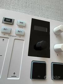 Offro come fda titolo tastiera midi, usata ma tenuta maniacalmente, in studio non fumatori. Tastiera perfettamente funzionante, nessun segno di usura, tasti, pad e controlli tutti impeccabili. Caratteristiche principali: - 25 tasti slim sensibili alla dinamica - 8 PAD retroilluminati, 4 cursori, 8 encoder rotativi tutti programmabili - Integrazione perfetta con DAW - Alimentazione USB (cavo incluso) - Alcuni Software inclusi (tra cui Ableton live Intro dal valore di 90€) Spedisco SOLO, tramite subito o scambio a mano zona PE-CH. Astenersi, perditempo affaristi.