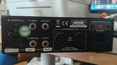 Testata per basso 350w su 4 ohm, ingresso per strumenti attivi/passivi, equalizzatore semiparametrico 7 bande, selettori deep, shape, eq in/out. Il pannello posteriore ospita un'uscita di bilanciata pre/post eq, l' fx loop, un ingresso ed una uscita di linea e una coppia di uscita per i diffusori di tipo speakon/jack. Tutto questo in soli 3 kg.