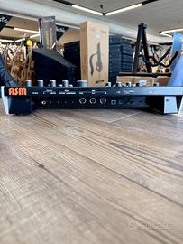 Modulo Sintetizzatore ASM HYDRASYNTH DESKTOP + IMBALLO Usato garantito, in ottime condizioni. Disponibile per prova in negozio. 24 Pad RGB polifonici e sensibili alla pressione Pad layout per impostare 16 differenti scale Sintesi wavetable ad otto voci (espandibile collegando un secondo Hydrasynth) 3 Oscillatori con 219 forme d'onda a ciclo singolo selezionabili Possibilità di creare forme d'onda personalizzate combinando fino a 8 waveform Modulatori di tipo Mutators in grado di creare sonorità FM-Linear, Wavestack, Hard Sync, Pulse Width, PW - Squeeze, PW-ASM, Harmonic Sweep Noise generator e Ring Modulator Mixer interno con possibilità di pan per ogni sorgente di ingresso (oscillatori) 2 Filtri multi modo, di cui uno inspirato al classico filtro SEM, ciascuno con 11 modelli selezionabili e source mix Possibilità di utilizzare i filtri in serie o in parallelo 5 LFO ciascuno 10 Forme d’onda selezionabili Modalità STEP in grado di creare pattern a 8 step Funzione delay, fade in, 3 modalità trigger, smoothing, start phase, modalità one-shot Sincronizzazione al BPM 5 Inviluppi a 6 stadi DAHDSR (Delay, Attack, Hold, Decay, Sustain e Release) 29 Sorgenti e 155 destinazioni di modulazione Matrice di modulazione con 32 indirizzamenti definibili dall'utente Le destinazioni di modulazione includono praticamente tutti i parametri del synth inclusi effetti e arpeggiatore I punti di incrocio della matrice stessa possono a loro volta diventare destinazione della modulazione Sorgenti e destinazioni includono anche CV Mod In & Out e MIDI CC Arpeggiatore con funzioni Rachet e Chance per generare pattern ritmici con casualità regolabile ed una maggiore spontaneità durante la performance Pre-Effects (posizionati prima del delay e riverbero): Chorus, Flanger, Rotary, Phaser, Lo-Fi, Tremolo, EQ, Compressor (con side chain) SPEDIZIONE GRATUITA