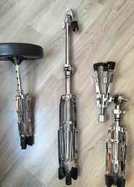 Vendo supporti per batteria COME NUOVI (acquistati nuovi su Thomann, quasi mai utilizzati). Il set contiene: x1 (Asta per piatto sospeso/Crash regolabile in altezza e inclinazione) x1 (Asta "a giraffa" per piatto sospeso/Crash/Ride) x1 (Treppiede per rullante) x1 (Asta per Hi-hat, due piedi + staffa d'appoggio per il pedale) x1 (sgabello con regolazione ad altezze prefissate) ______________________________ N.B.: • non è incluso il Pedale per Grancassa! •Consegno esclusivamente di persona, nei dintorni della città di Trento (TN).
