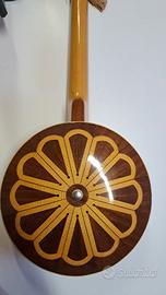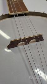 Banjo chitarra 6 corde , strumento di fine anni 70 circa , tenuto bene con ovviamente qualche segno del tempo ,manico ,pelle e meccaniche in ordine.