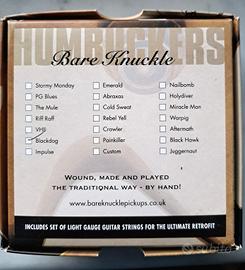 **SPEDIZIONE INCLUSA** Vendo humbucker Bare Knuckle Black Dog finitura Zebra, avvolto a mano e Made in UK! Completo di scatola originale e certificazioni. Classico suono vintage del PAF ma come sotto steroidi. Magneti in Alnico V e 9.4 kΩ di output. Per altre foto o info contattatemi. NO SCAMBI