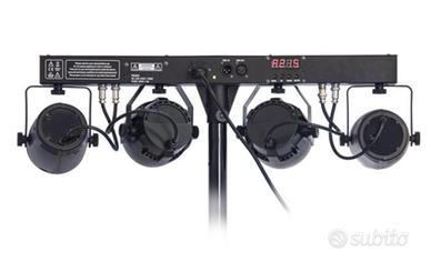 atomic4dj pls1 Set composto da stativo, barra pre-cablata assemblata con: 2 PAR LED RGBW e 2 effetti LED Caledo, incluso telecomando a infrarossi PAR LED 12 x 1 watt (3 Rossi 3 verdi 3 Blu 3 bianchi) Caledo con 4 LED da 3 watt RGBW Possibilità di funzionamento: automatico, Sound, Telecomando IR, Master/Slave, DMX a più canali. Prodotto nuovo ex demo
