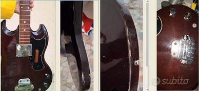 Prodotto in Giappone nella metà anni '70 della fabbrica Matsumoku, con corpo in mogano, manico avvitato e pickup singolo. Il pickup manca di avvolgimento e la tastiera si presenta scollata per metà come da foto. SPECIFICHE DEL PRODOTTO •Marca: Maya •Modello: Basso elettrico SG - EB-0 •Finitura: Noce •Prodotto in: Giappone anni '70 SOLO RITIRO A MANO