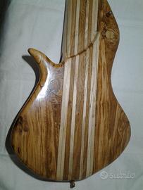 Vendo basso artigianale 6 corde legni ulivo rovere e acero. Pick up autocostruiti