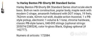 Basso modello Harley Benton PB-shorty BK standard serie, amplificatore Harley Benton HB- 20B, completo di cavi, e custodia zaino. vedere foto per caratteristiche. ottimo pet iniziare. preferibile consegna a mano zona Mestre, Treviso, Mogliano Veneto.
