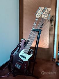 Vendo basso elettrico 5 corde Cort GB35A, strumento versatile e affidabile, ideale per molti generi musicali. Design in stile Jazz Bass con elettronica attiva a 2 bande e possibilità di utilizzo attivo/passivo: grande flessibilità sonora, dai suoni caldi e profondi fino a timbriche più moderne e definite. Caratteristiche principali: Corpo ergonomico e ben bilanciato Manico in acero e tastiera in palissandro (22 tasti). Configurazione pickup versatile (tipo Jazz + humbucker). Equalizzatore attivo per modellare il suono Scala 34” e ottima suonabilità Condizioni ottime, perfettamente funzionante. Accessori: tracolla, Strap Lock antisgancio. Ottimo rapporto qualità/prezzo, perfetto sia per chi inizia sia per chi cerca un basso completo senza spendere troppo. Una corda si è sfilacciata durante l’accordatura e va sostituita. Il resto dello strumento è in ottime condizioni.