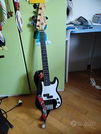 Basso elettrico con tracolla ,appoggia basso, custodia, amplificatore con cavo, leggio. Tutto in ottime condizioni.