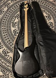 Basso elettrico Ibanez SR300EB Weathered Black con EQ a 3 bande, pari al nuovo con tracolla e custodia imbottita Rockbag, idrorepellente e robusta.