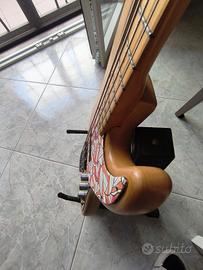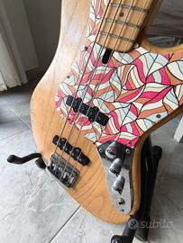 Corpo in frassino di liuteria, manico in acero, battipenna in legno personalizzato con decorazione unica.