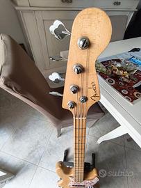 Configurazione tipica Jazz Bass: doppio pickup single coil, controlli volume/tono separati.