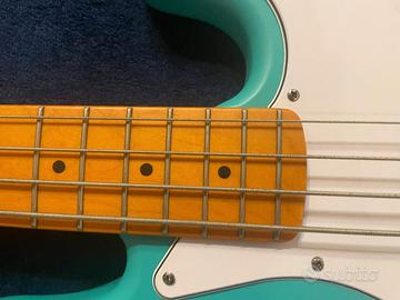 Vendo questo stupendo basso elettrico in edizione 40th anniversario, non in Classic vibe ma una versione limitata con migliore qualità. Nuovo il costo era di poco superiore ai 500 euro. Il basso è perfettamente funzionante, ha qualche segno di utilizzo (come da foto). Le corde delle Ernie Bell 45 - 105 sono usate pochissimo (comunque sono utilizzabili senza problemi). Fatto setup e regolata l'action. Tutto originale tranne il battipenna che è stato cambiato con questo bianco al posto del suo che era color oro. In omaggio includo la tracolla Fender American Vintage Seafoam Green dal valore di 35 euro (che si vede nell'apposita foto singola) e borsa per il trasporto morbida Fazley. Ecco le caratteristiche principali del basso: Modello: 0379540549 Paletta: Jazz Bass Materiale del manico: Acero Finitura manico: Uretano satinato colorato Forma del manico: Forma a "C Costruzione del manico: Bolt-On Raggio tastiera: 9,5" (241 mm) Materiale tastiera: Acero Segnatasti: Punto nero Numero di tasti: 20 Capotasto: Osso Larghezza capotasto: 1,5" (38,1 mm) Materiale del capotasto: Osso Corpo: Nyatoh Finitura corpo: Uretano satinato Forma corpo: Jazz Bass Ponte: 4-Sellette Vintage Copripickup: Nero Piastra del manico: 4-Bolt Squier 40° Anniversario Pickup al ponte: Bobina singola in Alnico progettata da Fender Pickup al manico: Bobina singola in Alnico progettata da Fender