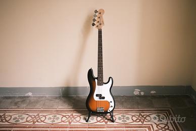 Vendo basso elettrico Squier Precision Bass a 4 corde, colore sunburst, in condizioni pari al nuovo.