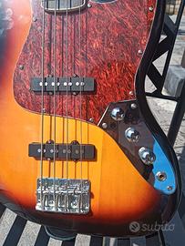 Basso Elettrico De Salvo stile Fender jazz vintage, colorazione burnburst, NUOVO. Regalato pochi giorni fa ma vendo per inutilizzo ( ne ho un'altro migliore che suono). La tracolla in foto non è inclusa.