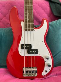Basso elettrico Squire a scala corta. Ortimo per chitarristi. Colore rosso. Praticamente nuovo. Consegna solo a mano.