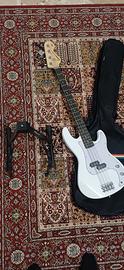 Encore Blaster E40 - Basso bianco vintage | Corpo leggero in paulonia solido Marchio Encore Taglia 3/4 Colore Bianco Tipo di materiale superiore Acero Tipo di materiale posteriore Paulownia Tipo di materiale corde Nichel Come nuovo, con supporto e custodia inclusi .