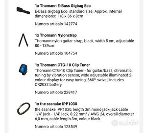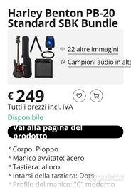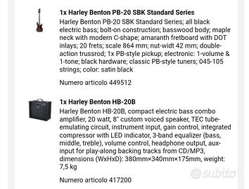 Vendo Set Basso Harley Benton PB20 SBK + Amplificatore + Custodia – Come Nuovo (249€ nuovo) 🟦 DESCRIZIONE Vendo set completo basso elettrico Harley Benton PB-20 Standard SBK, in condizioni ottime / pari al nuovo. 🎸 Basso 4 corde Harley Benton 🔊 Amplificatore per basso incluso 🎒 Custodia morbida Thomann 🎵 Accessori inclusi (come da bundle) ✔ Set completo pronto all’uso ✔ Ideale per iniziare o per chi vuole un kit già pronto ✔ Sempre tenuto con cura, perfettamente funzionante 💡 Prezzo nuovo attuale: 249€ (Thomann) 👉 Ottima occasione per risparmiare ❗ Vendo per inutilizzo 💰 Prezzo: 130€ non trattabili 👉 preferisco ritiro a mano, disponibile per prova