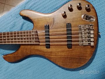 Vendo basso Ibanez EDB 555. Lo strumento è molto comodo, leggero [ 3,8 kg] con SI basso con volume equilibrato a quello delle altre corde. Il punto forte di questo basso è però sicuramente il manico in bubinga e jatoba, un po' in stile Warwick, ma molto più sottile e comodo. Le condizioni esteriche sono praticamente perfette; c'è solo qualche leggerissimo segno nella zona dello slap cut [prima foto] e la scritta "Duncan Design" scolorita su entrambi i pickup. Attualmente monta delle Ernie Ball Super Slinky 40- 125 ormai vecchiotte. Trussrod, elettronica e hardware perfettamente funzionanti: avendo una progettazione e costruzione ottimi, lo strumento ha avuto bisogno di pochissima manutenzione e ha sempre tenuto molto bene accordatura e intonazione. Lo strumento viene fornito in una custodia imbottita Stefy, rammendata, ma... funzionante allo scopo. Il prezzo è 400€. Importante: NON sono interessato a scambi. Sono disponibile a spedire, anche se ho preferenza per la consegna a mano in zona Castellammare/Pompei/Scafati/Angri.