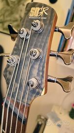 Pickup Bartolini passivi, preamp bass/mid/treble 9V con switch per usarlo anche in passivo, quindi senza batteria. Un altro switch permette di selezionare la frequenza di cut/boost delle medie. Ponte a sellette indipendenti. Nessun rumore di fondo del jack, nessun danno sul body. Gli unici danni sono visibili nelle foto: una scheggia del top della paletta e una rondella di plastica di una meccanica. Sono difetti estetici che non compromettono la funzionalità.
