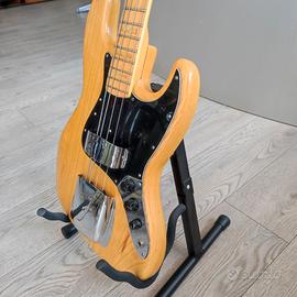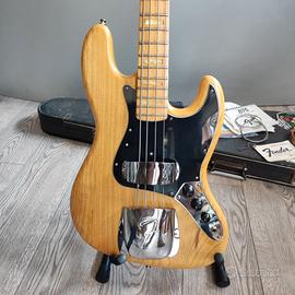 Originale e molto ben conservato basso Fender Jazz Bass periodo CBS indicativamente seconda metà anni '70. Fender era di proprietà della CBS dal 1965 al 1984, gli strumenti di questa epoca sono molto richiesti, specialmente quelli degli anni '70, e hanno raggiunto quotazioni elevate nel mercato vintage. Seriale 670900 realizzazione a Fullerton California USA probabile anno di produzione 1976-1977; Manico in acero con binding e block pearloid tipico del Jazz Bass mid-late '70; Pickguard nero a 3 strati; Copri pickup e ponte cromati con la “F” impressa – rari da trovare ancora presenti; Custodia rigida originale (interno rosso) con adesivi di locali in cui il proprietario si esibiva negli anni 80, un grande valore aggiunto: Logo grande “TV-style” sulla paletta in linea con produzione CBS '76–'77; Finitura Natural Ash: molto apprezzata dai collezionisti. Basso ottimamente conservato, leggeri segni sul body e sul binding (normali per l’età, nulla di grave) è inoltre presente la tracolla, il libretto di uso e manutenzione originale e un set di corde di ricambio ma inutilizzatedaanni.