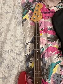 Vendo basso elettrico a 4 corde in stile Fender Precision, colore rosso brillante con battipenna bianco. Strumento ideale per principianti, studenti di musica o per chi cerca un basso solido e dal suono potente senza spendere troppo.