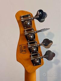 Basso elettrico praticamente nuovo! Serie Z Corpo: mogano Manico avvitato: acero Tastiera: acero Dot inlays: neri Tastiera: edgeless (dai bordi arrotondati) Raggio della tastiera: 305 mm (12") Lunghezza della scala: 864 mm (34") Larghezza del capotasto: 42 mm (1,65") Capotasto: osso Profilo del manico: C 22 tasti: Medium Jumbo Pick-up: humbucker Sire Standard MM (ponte) Preamplificatore Marcus Heritage-3 Controlli: volume, alti, medi, bassi con funzione push/pull Battipenna: nero a 3 strati Ponte: Sire Standard MM Meccaniche: aperte Standrad Hardware cromato Colore: Sparkle Black