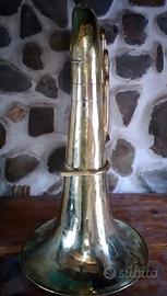 Bellissimo basso tuba in SIb Romeo Orsi. lo strumento è perfettamente funzionante e esteticamente impeccabile. Viene venduto munito di bocchino.