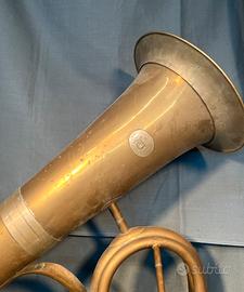 La patina del tempo, unita al marchio storico inciso, conferisce a questo elicone un fascino unico e irripetibile: non è soltanto uno strumento musicale, ma anche un frammento di storia della tradizione artigianale italiana, testimone di un’epoca in cui la musica da banda aveva un ruolo centrale nella vita sociale e culturale.