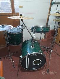 super prezzo di natale, solo per questi giorni, batteria acustica composta da:Grancassa da 16 con alza cassa per pedale, rullante 12,timpano 13,tom 12,Charleston 12,doppio Charleston con piatti cimbales, splash, crash, piatti china,tutto come in foto, stupendo suono, fusti in betulla e pioppo.